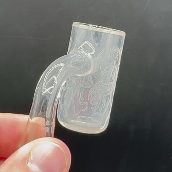 NO Chips or cracks in any of these used quartz. Most of them are still in 8/10 and 9/10 condition but some are chazzed and beat up a bit. Simple refurbish with quartz wizard or soup quartz and you will have a brand new quartz for steals! will be including pearls and pucks with bangers , sets with the slurpers , charmers will come with cone and cap or a cap